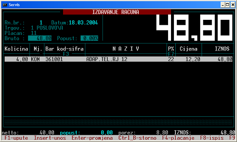 trgovca (operatera), naziv kupca, PDV. Ispis R-1 direktno na kasi